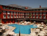 Современный отель находится у подножия живописных гор Бейда Марив. Недавно отель был полностью отреставрирован. На территории отеля можно поиграть в теннис или бильярд, посетить фитнес-центр, а для детей работают веселые водные аттракционы в аквапарке и анимация. Расположение Отель находится в районе Кириш города Кемер, в 40 км от центра и в 65 км от аэропорта Анталии. Общая площадь отеля 32 000 кв.м. Территория 2 открытых бассейна (1400 и 145 кв.м), крытый бассейн (107 кв.м, с подогревом в зимнее время), аквапарк (10:00-12:00/14:00-17:30), 2 водные горки, амфитеатр, ТВ-уголок, библиотека, живая музыка, дискотека (бесплатно), беспроводной интернет (в лобби и номерах, бесплатно), игровая комната, салон красоты. Размещение 384 номера. Главное здание: 88 standard rooms (22 кв.м, 3 чел., спальня, ванная комната, с видом на море) 224 standard rooms (22 кв.м, 3 чел., спальня, ванная комната, вид на территорию отеля) 15 family rooms (32 кв.м, 4 чел., 2 спальни с дверью, ванная комната, с видом на море) 2 junior suites (46 кв.м, 3 чел., спальня с дверью, ванная комната, с видом на море) Здание анекс: 138 classic rooms (22 кв.м, 4 чел., спальня, ванная комната, вид на территорию отеля) 50 family duplex rooms (60 кв.м, 5 чел., двухэтажный номер, 2 спальни, ванная комната) 2 senior suites (100 кв.м, 6 чел., 2 спальни с дверьми, 2 ванные комнаты) 1 king suite (110 кв.м, 4 чел., 2 спальни с дверьми, 2 ванные комнаты) Платно Массаж, освещение теннисного корта, бильярд, водные лыжи, серфинг, бананасейлинг, парасейлинг, дайвинг, обмен валюты, магазины, Интернет-кафе, конференц-зал, автобус в город, услуги доктора, услуги няни, чистка одежды, аренда машины. Рестораны и бары Главный ресторан - интернациональная кухня; 1000 чел., крытый, с террасой, есть детское и диетическое меню, дресс-код во время ужина. А’la Carte рестораны (19:00-22:00) турецкой (08:00-11:00), французской и рыбной кухонь - платно. Бар на пляже (10:00-00:00, бесплатно). Бар около бассейна (10:00-23:00, бесплатно). Бар в лобби отеля (09:00-02:00, бесплатно). Диско-бар (23:00-02:30, бесплатно). Кафе Turk (10:00-00:00, бесплатно). Пляж Собственный песчано-галечный, протяженностью 120 м. Пляжные полотенца, зонтики, матрасы и шезлонги - бесплатно. Важная информация С 1 ноября 2013 г. и в течение зимнего периода отель будет работать по концепции питания AI вместо UAI. Описание All Inclusive Завтрак: 07:00 – 10:00, Главный ресторан, Шведский стол Наряду с блюдами местной и интернациональной кухни на завтрак предлагаются диетические блюда (диетический уголок) и детское меню. Поздний завтрак: 10:00 – 10:30, Главный ресторан, Шведский стол. Обед: 12:30 – 14:30, Главный ресторан, Шведский стол, турецкая и международная кухни, меню из которых готовится на 14 дней. или Закуски: 14:30 – 16:00, Главный ресторан, Шведский стол. Печенье, чай и кофе: 16:00 – 17:00, Снэк-ресторан. Ужин: 18:30 – 21:00, Главный ресторан, Шведский стол, тематические и беждународные меню, разработанные на 14 дней. Ночной снек: 23:00 – 24:00, Главный ресторан, Мини-шведский стол, состоящий из супов, салатов, закусок, десерта и фруктов. Мини-бар: только вода. Бесплатные напитки: все безалкогольные напитки, пиво местного производства, горячие напитки, столовое вино, алкогольные напитки местного производства. Платные напитки: напитки Премиум, особые местные и импортные вина, шампанское, игристые вина, напитки в бутылках, энергетические напитки, свежевыжатые фруктовые соки. Дополнительные услуги в отеле Дополнительные бесплатные услуги: курсы турецкого языка, бочча, пресса, настол